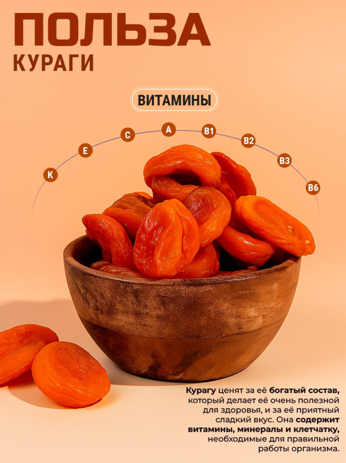 "Курага Королевская" – это изысканный выбор для ценителей натурального вкуса и пользы! Натурально высушенные плоды отборных абрикосов без добавок сохраняют максимум витаминов (A, C), минералов (калий, магний) и клетчатки. Идеальна как перекус, добавка к кашам, выпечке или десертам. Высокое качество продукта подтверждено сертификатами. Подходит для здорового питания всей семьи. Приобретайте прямо сейчас по выгодной цене!